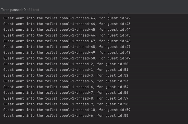 something 메서드는 5초의 대기시간을 주기 때문에, 5초마다 화장실을 이용하는 손님이 바뀔 거라는 것을 예상할 수 있습니다.