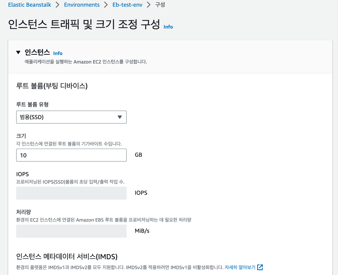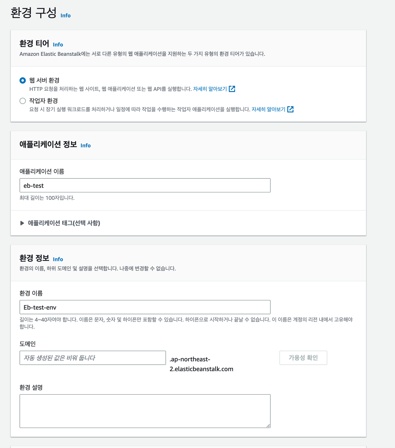 여기까지 설정하고 검토 단계로 건너뛰면 잠시 뒤 EB 가 생성됩니다.