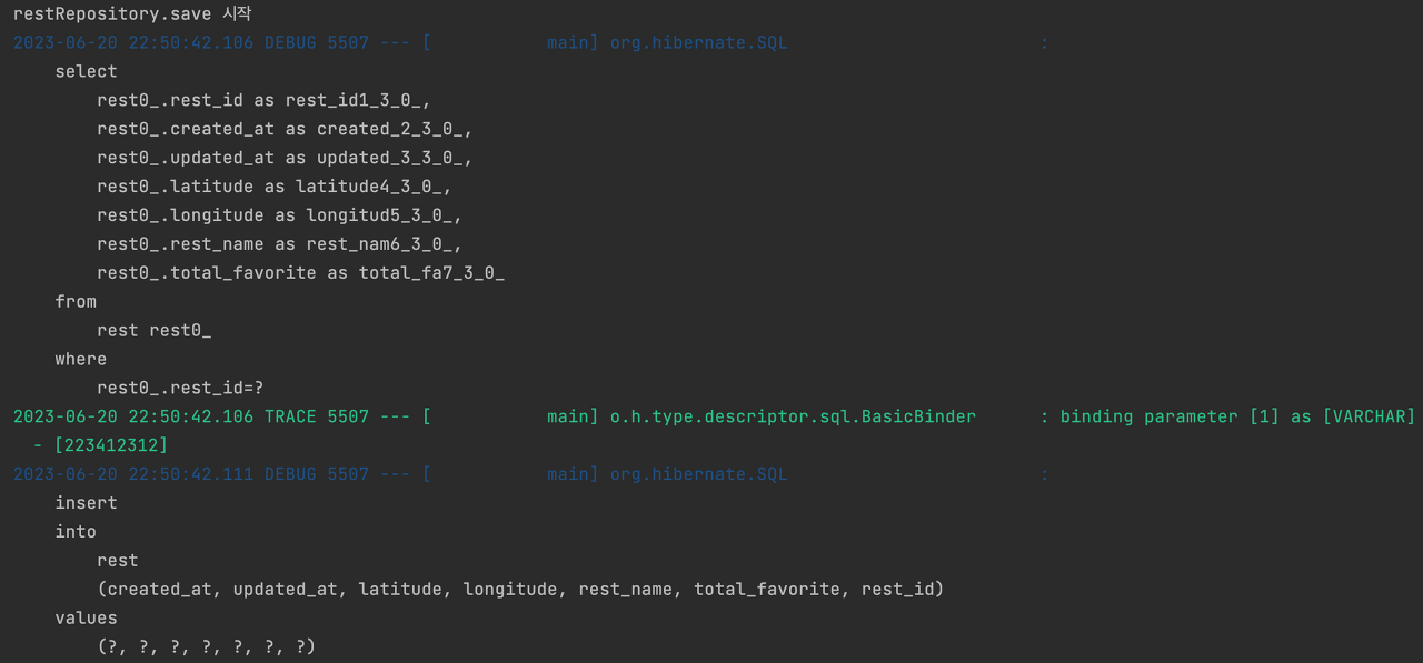 간단한 로직이기에 문제는 없을 거라 생각했습니다. 그런데 식당 정보를 DB 에 저장할 때 select 쿼리가 호출됐습니다..