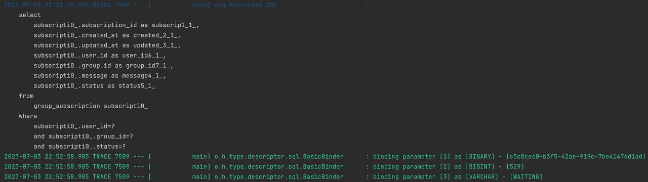 제가 의도한 동작 방식은 조인을 하지 않고 Subscription 엔티티의 필드만으로 데이터를 조회하는 것이었습니다.