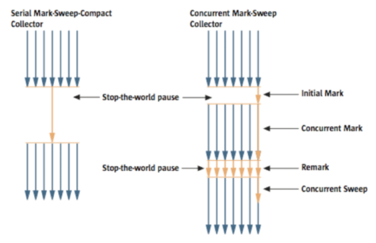 Concurrent-Mark-Sweep 의 줄임말로 Stop The World 시간을 최소화하기 위해 고안되었습니다.