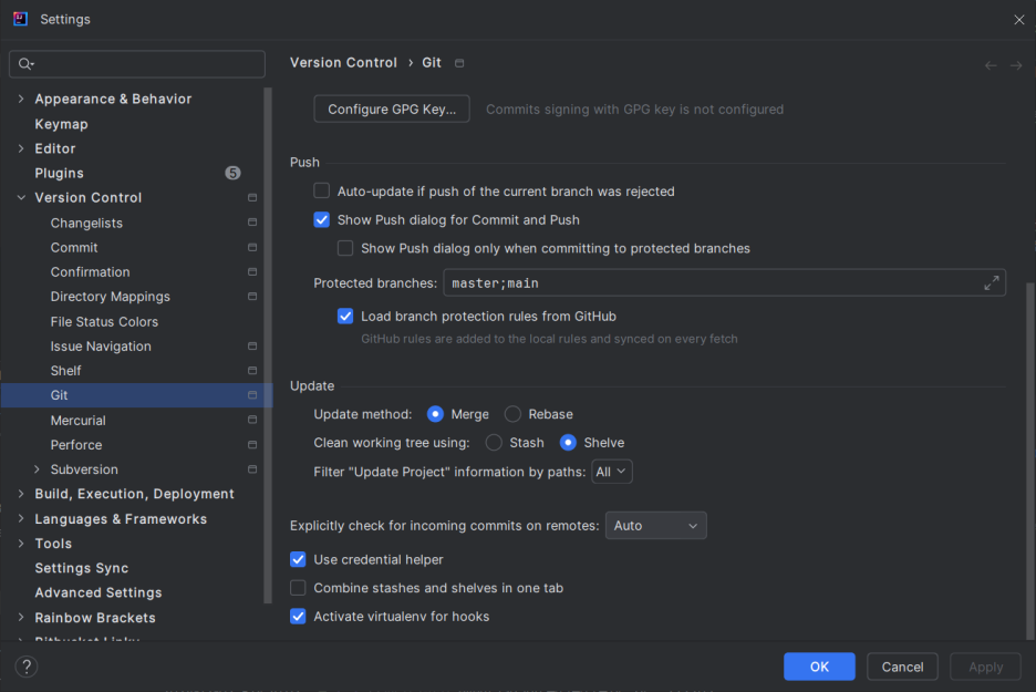 intellij setting -> version Control -> git -> Use credential helper 활성화